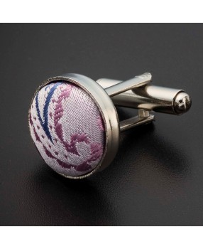 Boutons de manchettes - acier & soie - tissu rose à motifs Paisley bleu