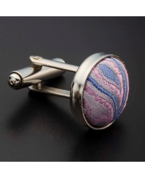 Boutons de manchettes acier & soie - tissu couleur rose à motifs Paisley bleu