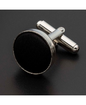 Boutons de manchettes acier & soie - couleur tissu uni noir