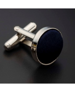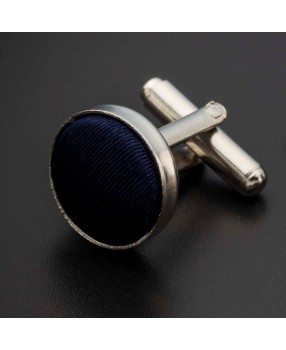 Boutons de manchettes acier & soie - couleur tissu uni bleu foncé