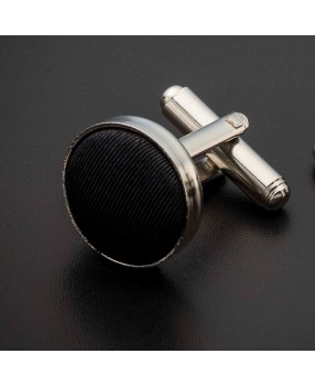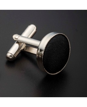 Boutons de manchettes acier & soie - couleur tissu uni gris foncé (anthracite)