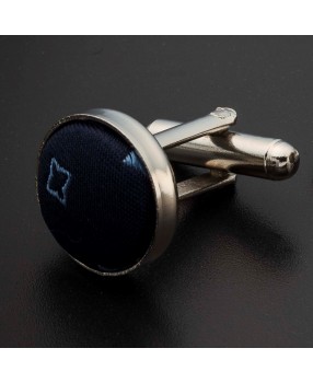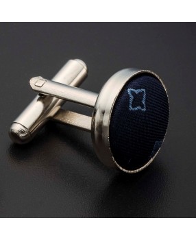 Boutons de manchettes acier & soie - tissu couleur bleu foncé à motifs bleu clair