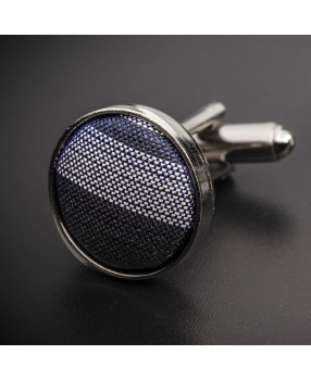 Boutons de manchettes acier & soie - tissu couleur bleu à carreaux