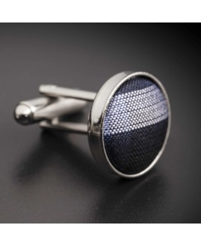 • Boutons de manchettes acier & soie - tissu couleur bleu à carreaux