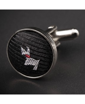 Boutons de manchettes acier & soie - tissu couleur noir à motifs petits chiens