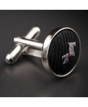 Boutons de manchettes - acier & soie - tissu noir à motifs petits chiens