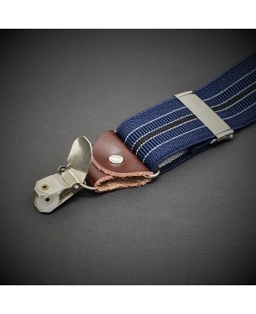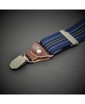 Bretelles homme - cuir véritable & élasthanne - 3,5x120cm - bleu rayé