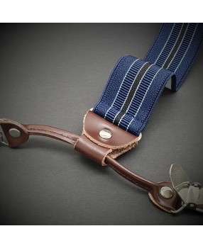 Bretelles - 3,5x120cm - cuir véritable & élasthanne - couleur bleu rayé (rayures bleu clair et blanches)