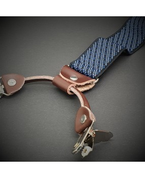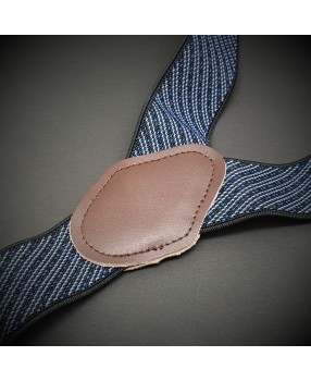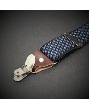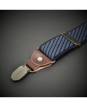 Bretelles homme - cuir véritable & élasthanne - 3,5x120cm - bleu à rayures diagonales blanches