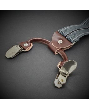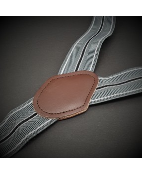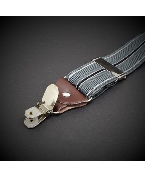 Bretelles homme - cuir véritable & élasthanne - 3,5x120cm - gris rayé