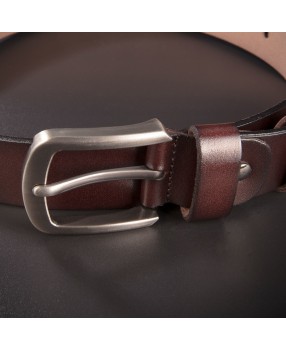 Ceinture "casual" homme - 4,0x130cm - cuir véritable - couleur brun foncé