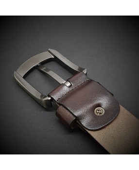 • Ceinture "casual" homme - 4,0x130cm - cuir véritable - couleur brun foncé