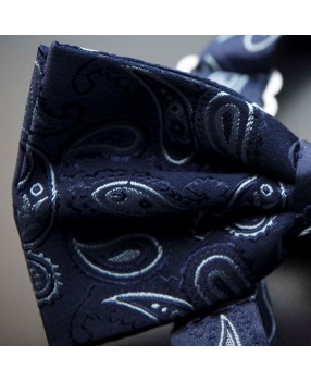 Ce noeud papillon en pure soie de couleur bleu foncé à motifs Paisley est un très bon accessoire pour rehausser votre look en lui apportant une touche originale. Il est parfaitement adapté aux grandes occasions tels que mariages, baptêmes ou soirées galas.