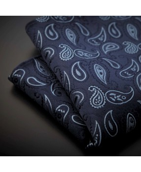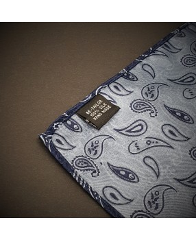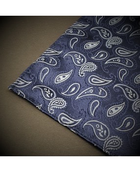 Pochette - pure soie - bleu foncé à motifs Paisley bleu clair