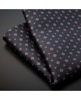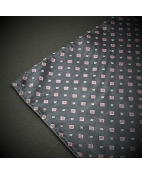 Pochette pure soie - gris foncé (anthracite) à motifs rose et argenté