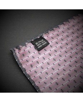 Pochette - pure soie - gris foncé à motifs rose et argenté