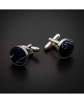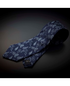 Ces différents accessoires en pure soie bleue foncée à motifs Paisley bleus clairs constituent un "must have" pour les grandes occasions telles que mariages, baptêmes ou soirées galas.